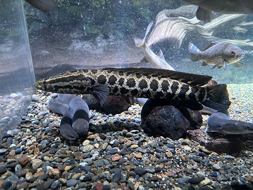 図2. 水槽をゆうゆうと泳ぐカムルチー(カワスイ 川崎水族館)。