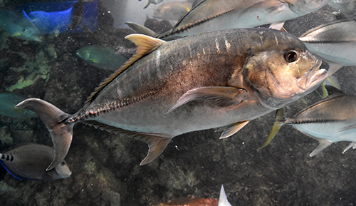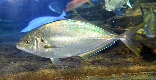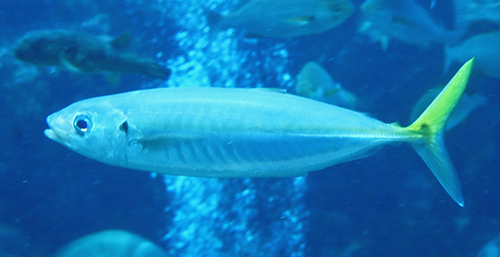 マアジにそっくりなマルアジは青みが強くアオアジともよばれている。マルアジはマアジ属ではなくムロアジ属である。