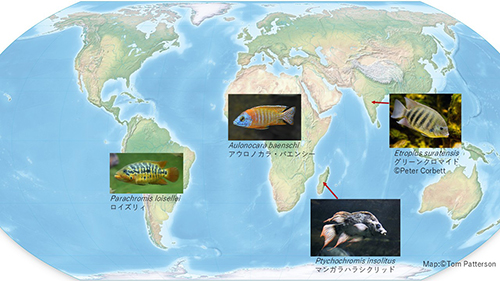 シクリッド科ではこのほかにもさまざまな食性が進化した。シクリッド全体でからだの構造にはあまり違いが見られないが、頭部の構造は近縁種の間でも大きく異なることがある。食性の違いによることが多いのであろう。