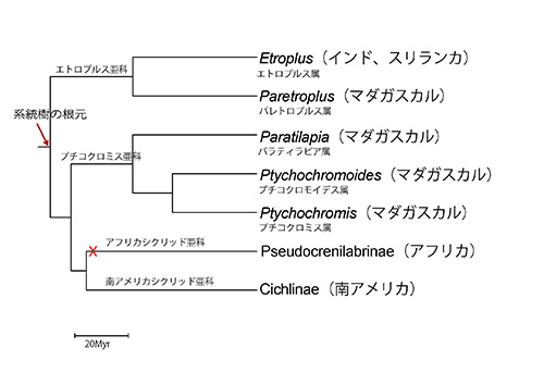 もしも系統間の分岐が地質学的な分裂よりも後だったとすると、分裂したあとでもしばらくは海をはさんだ集団間で遺伝的な交流が続いたことになる。シクリッドはたいてい淡水生なので、そのような交流は難しそうに思われる。しかし、先に述べたように海水生のシクリッドもまれではあるが実際にいるので、海を越えた移住の可能性はある。