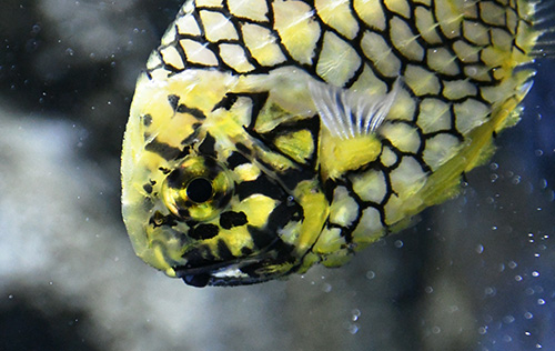 1914年8月13日、暴風雨の影響で富山県魚津町は停電になった。その時、魚津水族館の真っ暗な水槽の中で、マツカサウオが放つ小さな光が発見されたのである。魚津中学校博物科の吉澤庄作教諭はこの発見を動物学雑誌に掲載し、マツカサウオの発光に関する世界初の報告になった(11, 12)。