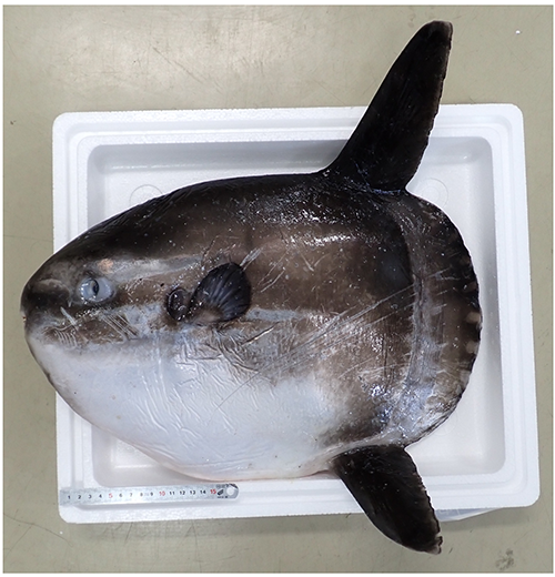 図2. マンボウMola mola(DNAで同定済)。マンボウとしては小ぶりなサイズだけど、寄生虫はしっかり付いていた。