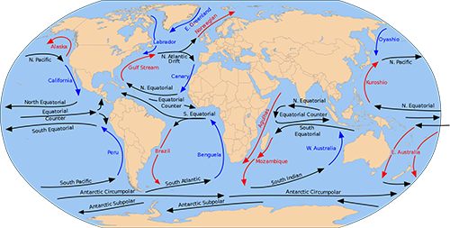 黒潮のエネルギーは、偏西風や貿易風に地球の自転による効果が加わって生み出される。黒潮の中の速いところは秒速2メートルほどで、競泳短距離の一流選手の泳ぐ速さに匹敵するという(1)。
