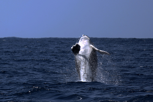 図7-7 ザトウクジラ(Megaptera novaeangliae)の子供のブリーチング。2017年3月4日、小笠原・父島付近にて。