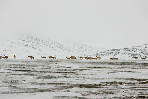酸素濃度の減少はわれわれの祖先に大きな試練を与えた。生き物には環境の変化に適応する能力があり、酸素濃度の減少だけであればなんとか適応できたかもしれない。実際、単弓類から進化した哺乳類の中には、ヤクやチルー(図14-7)など標高5000メートルのチベット高原に生息するものがいる。