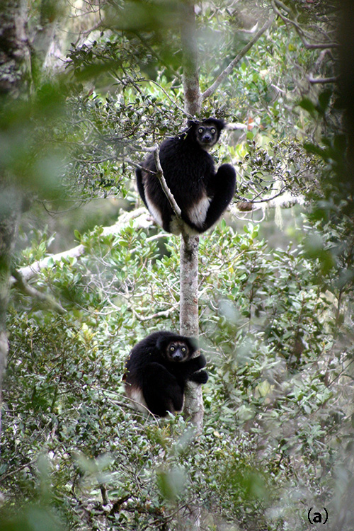 インドリは動物園では見ることのできない動物である。かつて巨大な檻で飼うことが試みられたが、長く生きることができなかった (2)。自由に生きる広大な土地が必要なのだ。彼らは多様なものを食べるが、われわれはそのリストを完全には知らないために、狭い土地では必要な食物が手に入らないということもあるのだろう。従って、マダガスカルの森林が開発により細かく分断されつつある現在の状況は、インドリの将来に暗い影を落としている。