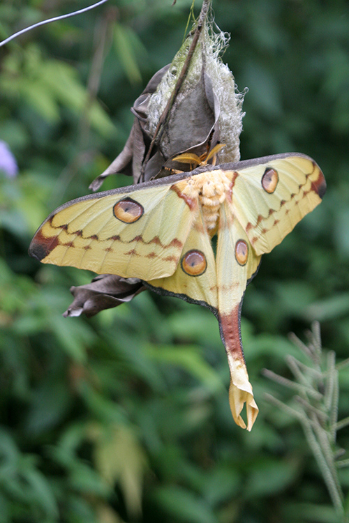 似たような突起は、ガのなかでも図25-2にあるマダガスカルのニシキオオツバメガなどのシャクガ上科ツバメガ科オオツバメガ亜科(Uraniinae)や日本にも分布するアゲハモドキなどカギバガ上科アゲハモドキ科(Epicopeiidae)でも見られる。これらは色彩的にもアゲハチョウに似ているが、尾状突起については、これから詳しくその役割を紹介するように、カイコガ上科のヤママユガ科でもよく見られる。