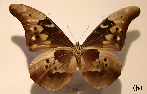 図25-8a、bはこれと同種だが亜種レベルで区別されるカキカモルフォの表と裏を示す。裏は表と違って茶色である。
