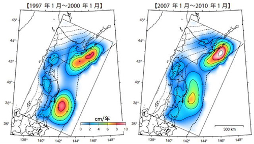 注2:国土地理院, 東北地方の地殻変動, 地震予知連絡会会報,第86巻,184-272,2011. (P.186および第16図を参照)。これは2011年2月18日の第 189回地震予知連絡会で報告されたものです。http://cais.gsi.go.jp/YOCHIREN/report/kaihou86/03_34.pdf