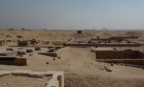 ちなみにエジプトにはピラミッドがたくさんあります。たとえばサッカラの階段ピラミッドのすぐ南側では、周辺の遺跡の発掘作業が現在も続いていますが、発掘現場の向こう側には丘のような盛り上がりがたくさん見られます(図3)。これ、よーくみると全部ピラミッドです。ぱっと数えても10個以上。ピラミッドは王様などのお墓であるとともに、当時の権力の象徴でしたから、大小さまざまなピラミッドが多数あることは当然のことでしょう(日本の古墳も同じで、奈良県・京都府の県境付近には沢山あります)。