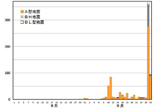 「地震活動に異常があったのに、なぜ火山噴火を予見できなかったのか?」 気象庁や火山学者を批判する声は、一般の市民からだけでなく、著名な大学教授からも上がりました。しかし火山の中の「実態」はそれほど単純ではなかったのです。まず噴火前の地震活動をもっと詳しく見てみましょう。