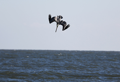 ペリカンは上空から海に突っ込んで魚を捕るが(図11-7)、ペンギンは水中を泳ぎながら捕る。ペンギンモドキも図11-6bのようにペンギンと同じような行動をとっていたとすると、そのために小脳の形態が似ていたという可能性がある。しかし、もしも河野さんたちの発見が、ペンギンモドキがペンギンの系統から進化したことを意味するのであれば、ペンギンの分布についての私の議論は間違いだということになる。