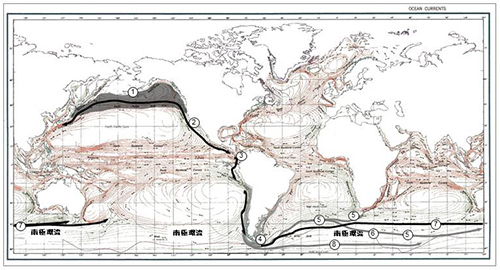 南半球に進出したアシカ科は、南アメリカ沿岸に分布を広げた。図12-6④には現在オタリアとミナミアメリカオットセイが分布している。中新世後期の580万年前頃に、図12-6④あたりから、南極大陸の周りを西から東に向けて流れる南極環流に乗ってアフリカ大陸やオーストラリアへと分布を広げた。