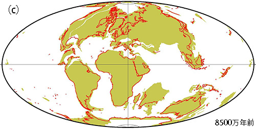 イギリスのケイス・ランコーンらは1956年に、北アメリカとヨーロッパの古生代から新生代第三紀にかけてできた岩石の古地磁気を調べた結果、まさに大陸移動の証拠をつかんだのだ。
