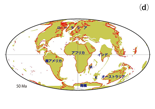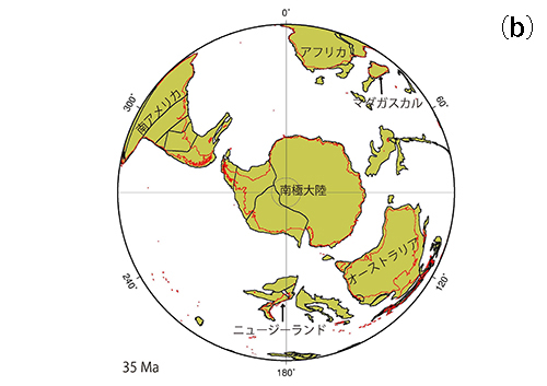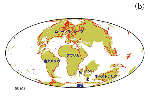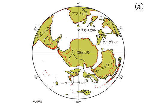 それ以前のおよそ8000万年前までは、南極大陸から伸びたケルゲレン半島を通じてインドやマダガスカルまで陸続きだったが(図18-1b)、エピオルニス科の祖先がマダガスカルに到達した頃にはインドはすでにマダガスカルから分離しており、ケルゲレンも南極から分離していた(図18-1c、図18-2a)。