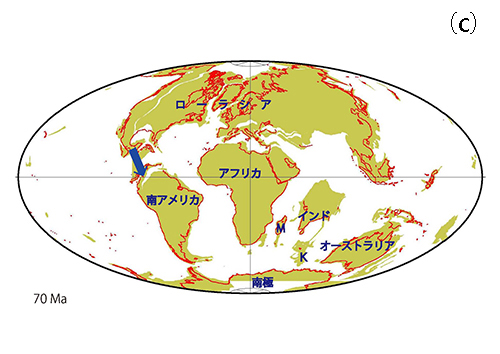 図17-4に示した南方古顎類の共通祖先は、およそ7000万年前までには北アメリカから当時存在したパナマ海峡を渡って南アメリカに到達したものと考えられる(図18-1c)。
