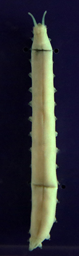 一方、カギムシは分節化しないイボ状の歩脚をもつが、節足動物の祖先も硬い外骨格で覆われるようになる前は、そのような肢をもっていたものと考えられる。