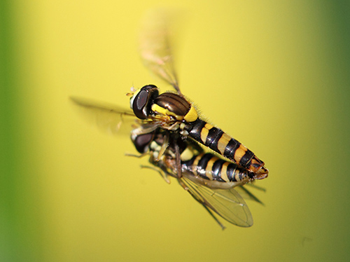 図20-6 ヒラタアブ(種名不明:双翅目・ハナアブ科)。