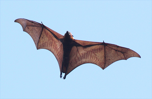 図20-8 ジャワオオコウモリPteropus vampyrus.哺乳類のコウモリも、鳥類とは違ったやり方で前足を翼に進化させて空に進出した)。