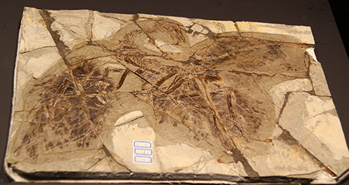 図27-6 羽毛恐竜アンキオルニスAnchiornis huxleyi。ジュラ紀後期、中国山東省天宇自然博物館所蔵。
