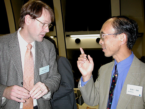 1998年にドイツのビル・マーチン(図32-2)は、ミュラーと一緒に、「真核生物の起源に関する水素仮説」(以下では「水素仮説」と呼ぶ)というまったく新しい考えを発表した。図32-2の写真は、その2年後に彼らの「水素仮説」について講演してもらうために、著者が彼を日本進化学会に招待した際のものである。