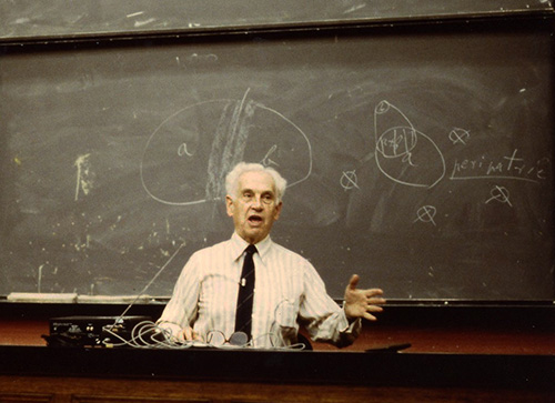 図34-2 エルンスト・マイヤーErnst W. Mayr(1904-2005)。1987年、カリフォルニア大学バークレー校での講演会にて。