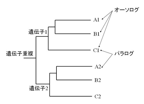 一方、新しいパラログは、真核生物の一部のグループ、例えば動物界だけでしか見られない遺伝子ファミリーである。この場合は、遺伝子重複はその特定のグループが進化した途中で起ったものと推定される。