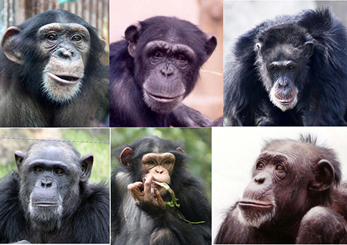 チンパンジーに対して、ヒトの写真を使って顔認識テストをすると、彼らはうまく見分けられない。そのためチンパンジーの顔認識能力はヒトにくらべて劣っていると考えられた。ヒトである研究者にとっては、ヒトの顔は一人一人違って見えるのに、チンパンジーの顔はみな同じように見える。従って研究者は、ヒトの顔を見分けられないチンパンジーが、ほかのチンパンジーの顔を見分けられるはずはないと考えたのだ。図50-1にチンパンジーの顔写真をいくつか示したが、読者の皆さんにとっては、どうであろうか?