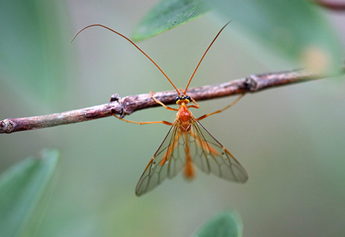 あらゆる動物にはそれに寄生するものがいる。寄生者は細菌、菌類、原生生物などさまざまだが、なかには近縁な動物に寄生されることもある。そのような寄生として有名なのが、ヤママユに寄生する膜翅目(まくしもく)のベッコウアメバチモドキという下の写真で示したハチである。