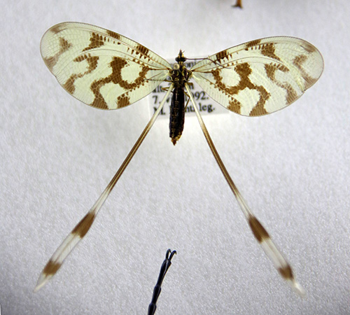 ヤママユガ科には下の写真のように後翅に長い尾状突起をもつものが多いが、これはコウモリの捕食を免れる効果があるという研究がある(7)。これらの尾状突起は飛ぶための役には立っていないようである。