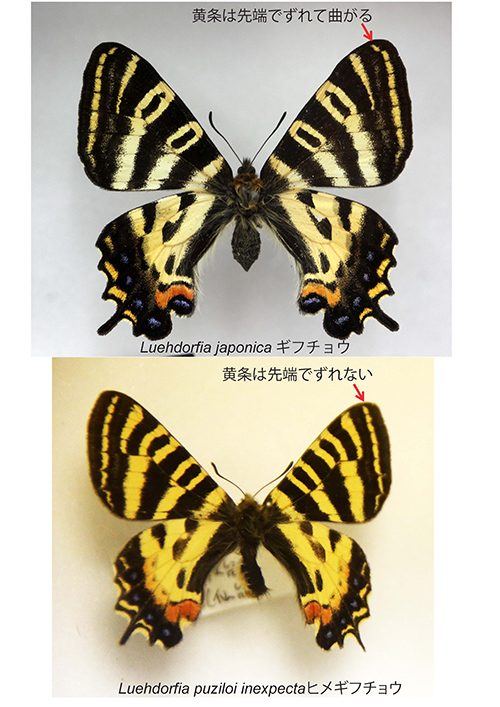図20AIbi-1-7でアゲハチョウ属と姉妹群の関係にあるカバシタアゲハは、図18AIbi-1-5でも出てきたが、タテハチョウ科のアサギマダラとそっくりである。これは毒をもつアサギマダラに似ることによって、捕食者に食べられないようにしているベイツ型擬態の一例と考えられる。