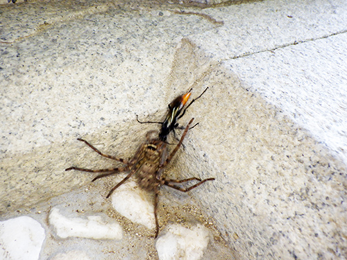 狩りバチのアカクモバチは、狩った獲物を巣まで運び、獲物に卵を産みつけるが、狙いをつけた獲物に直接卵を産みつけるだけのハチも多い。これを「寄生バチ」という。