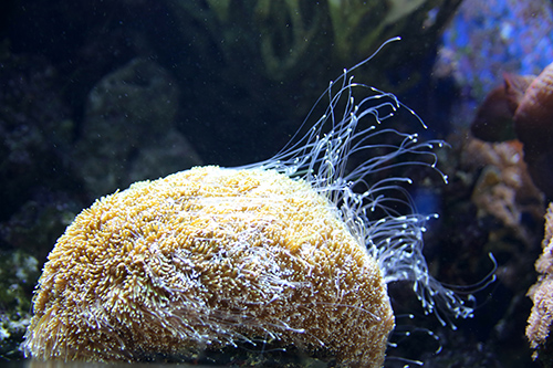 サンゴの上には微小な砂粒などの塵が降ってくる。これが積もると体内の褐虫藻に光が届かなくなるので、サンゴは粘液の膜でからだを覆い、塵が積もったら粘液ごと剥がして捨てるのだ。粘液はからだを保護するためにも役立つ。サンゴから剥がされた粘液の膜は栄養価が高く、それが多くの動物を養っているのだという(6)。