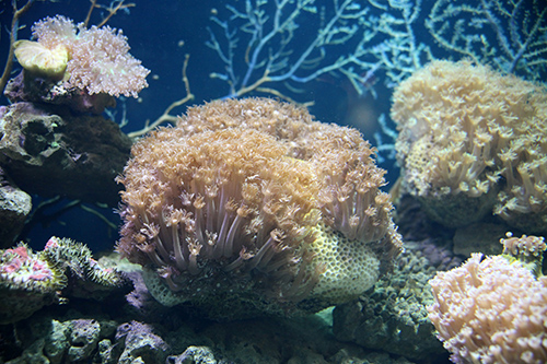 ところが、サンゴ礁では海藻や植物プランクトンが非常に少ない。海中を漂う植物プランクトンが少ないために、海水の透明度が高いのである。光合成を行なう一次生産者がいなければ、動物は生きられないはずなのに、実際にはサンゴ礁には多様な動物が生息している。彼らを養っている栄養の元はどこからきているのだろうか。