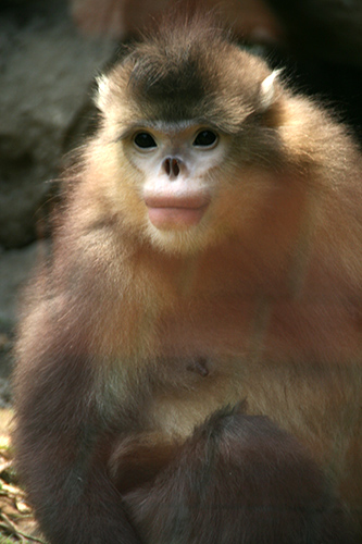 冒頭の写真、ニホンザル(図4-1a)の顔をよく見てください。左右の鼻の穴は近接していますね。前回登場したクロツメバナザル(下の写真)も左右の鼻の穴は近接しているのが分かるでしょう。これらのサルは、狭鼻猿類オナガザル上科です。