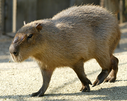 新世界ザル以外にも、祖先がその頃にアフリカから南アメリカに渡って来たと考えられる哺乳類がいます。テンジクネズミ(モルモット)、マーラ(図4-3a)、カピパラ(図4-3b)、オマキヤマアラシ、カナダヤマアラシ(図4-3c)などげっ歯目テンジクネズミ上科のなかで新世界に生息する動物たちです。