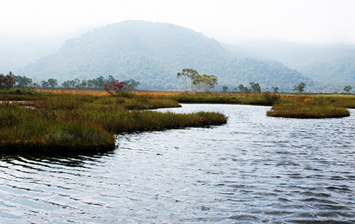 それでは、新世界ザルの祖先はどのような方法で海を渡れたのでしょうか? 下の写真(図4-4)は尾瀬の沼にできた「浮島」で、水草などの植物の枯れたものが積み重なってできたものです。