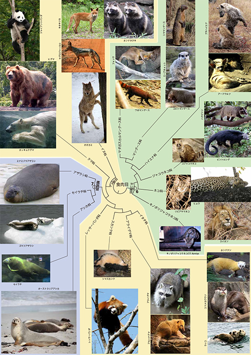食肉目のなかのもう一方のグループであるイヌ亜目ではもっと目覚ましい多様化が起りました。陸上動物として進化した食肉目のなかから、水中生活に戻るものが現れたのです。