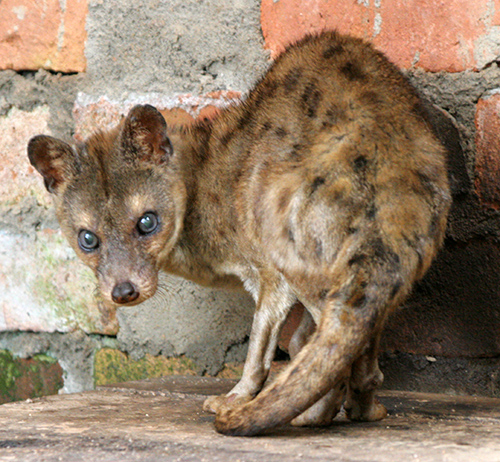 ネコ亜目のなかには、食肉目で唯一マダガスカルに生息するグループで、すでに第5話で出会ったマダガスカルマングース科の動物がいます。ワオマングースとフォッサです。実はマダガスカルにはこのほかにマダガスカルジャコウネコ(図8-2)という食肉類もいるのですが、名前から分かるように以前はジャコウネコの仲間だと考えられていました。また、図8-1に出てくるフォッサもジャコウネコの仲間だと考えられていました。