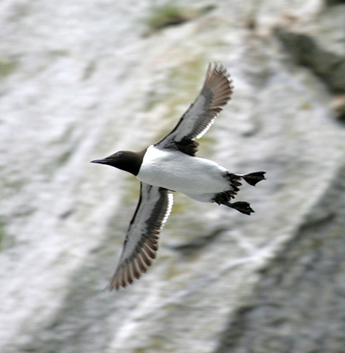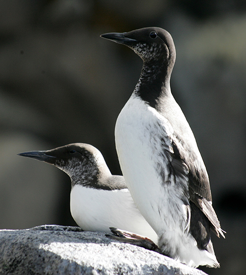 ペンギンは南半球にしか生息しないのですが、北半球にもペンギンに似た鳥がいます。ウミガラスです(図13-4a)。ペンギンとウミガラスはどちらも海で魚を採って食べています。1つの違いは、ペンギンは空を飛べないのに対して、ウミガラスは飛べるということです(図13-4b)。