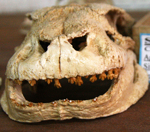 鳥類+恐竜とワニ類をあわせて「主竜類」と呼びますが、○19(図11-1)の子孫がすべて主竜類です。ところで現生のワニはすべて肉食性ですが、中生代白亜紀にはワニ類はもっと多様で、草食性と考えられるものもいました(図14-2)。