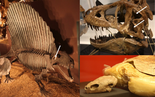 哺乳類型爬虫類や哺乳類では、1つの孔が頬にあいているため、これらの動物を「単弓類」と呼びます。