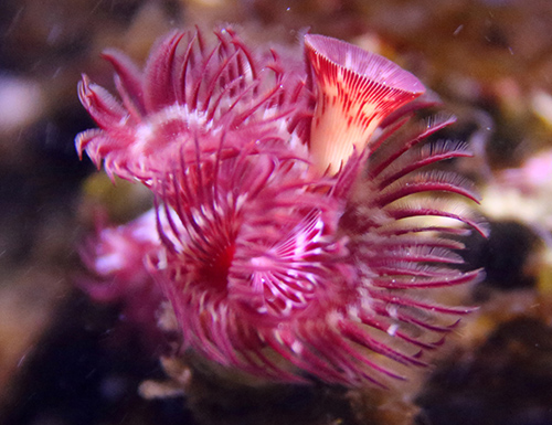 ミミズやヒルなどの環形動物は体節をもつために、かつては節足動物に近いとされていたのが、最近になって軟体動物に近いことが分かったということをお話しました。環形動物は非常に多様なグループで、主に海水中に生息するゴカイ、ケヤリムシ(図15-1の動物界系統樹マンダラのなか)、ヒトエカンザシ(図16-7)などの多毛類も含まれます。