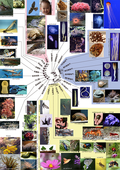 これまで、動物界のなかではカイメンが最初にほかから分かれたと考えられてきました。カイメンは筋肉も神経系ももたないので、現生の動物のなかでは動物界の祖先型に最も近いと考えられるからです。