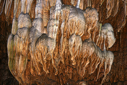ポリプは、海水中の二酸化炭素やカルシウムを取り込んで炭酸カルシウムを主成分とした骨格を作ります。それが集まってサンゴ礁ができるのですが、サンゴ礁はいろいろな動物に住み家を与え、独特の生態系を形成します。鍾乳洞は、昔のサンゴなどの炭酸カルシウムから作られた石灰岩でできたものです(図17-4)。
