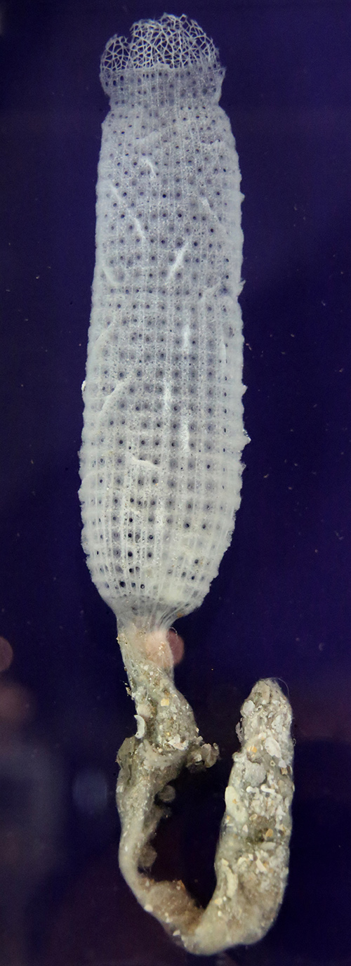 次に出会うのが、カイメンとの共通祖先●27(図15-1)です。カイメンは固着性の動物で、筋肉も神経系ももたないといわれています。体内を通り抜ける水を濾過して、その中から有機物微粒子や小さな生き物を捕らえて食べます。カイメンの一種であるカイロウドウケツ(図17-6)は二酸化ケイ素の骨片によってその特徴的な構造を作っています。