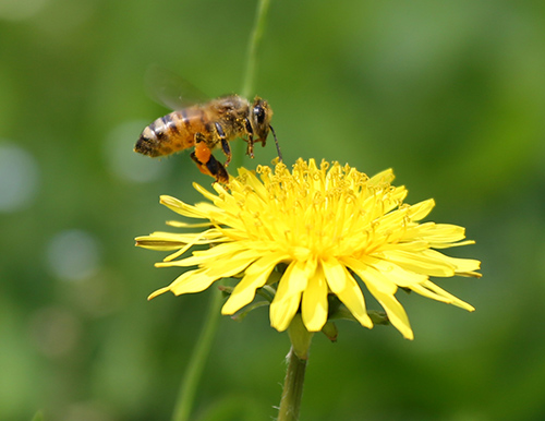 そもそも植物はなぜ蜜を作るのでしょうか? それは、昆虫や鳥、コウモリなどに花粉を運んでもらって、同じ種類のほかの花のめしべに受粉するのを助けてもらうためです。昆虫などに花粉を運んでもらうために蜜を作るというと、あたかも植物が自分で考えてやっているように思われるかもしれませんが、本当は違います。そのように蜜を作るようになった植物の花にはたくさんの昆虫がやってくるようになり、そのために受粉がうまくいくようになって、そのような植物の子孫が増えるということなのです。子孫を増やすような形質が進化するということです。蜜を吸いに来た昆虫などのからだにはたくさんの花粉がつきます(図19-6)。