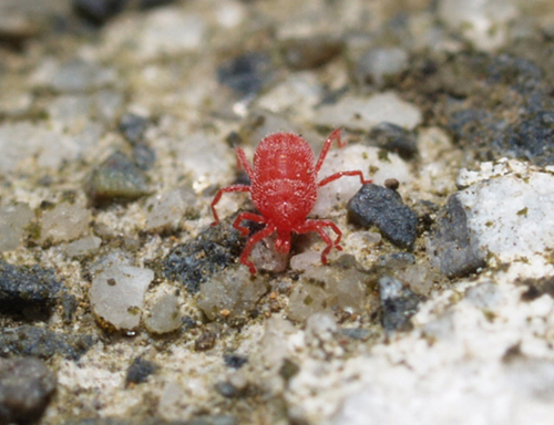 少し季節外れの話題になってしまうけれど、寒い冬が終わり、過ごしやすい春になった5月頃のことを思い出してほしい。週末のお昼ごろに近くの公園に散歩に出かけた、あなた。ポカポカの陽気につつまれて、空いているベンチに腰を下ろして、ぼんやりとしている。そこで、ふと視線をベンチに落とすと、ベンチの上を動き回る小さな赤い虫。うわっ! このような、ゾッとした経験はないだろうか。僕も子供の頃は、この小さな赤い虫を気味わるく感じたことを覚えている(図2-1)。
