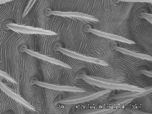 カベアナタカラダニは、走査型電子顕微鏡で見ると、その姿はとても可愛い(図2-3)。身体が一面の毛で覆われているのでケダニ類というグループに所属する(図2-4)。