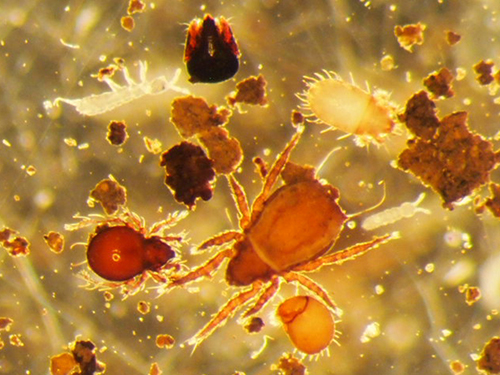 ササラダニ類は、生態系の分解者として知られています。餌は落葉落枝とそこに生息するカビなど。ササラダニ類の糞をさらに土壌微生物が分解してくれます。ササラダニ類などの節足動物は「物理的分解者」、土壌微生物は「化学的分解者」と呼ばれ、植物の栄養になるようなよい土を作り出します。もし生態系から分解者がいなくなると、森は落ち葉で覆われてしまうかもしれませんね。